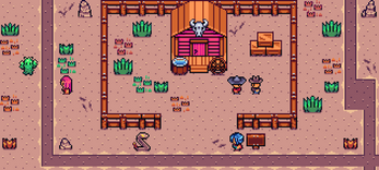 - 3 NPCs (sheriff, cowboy and bandit) with walk and idle animations in four directions;